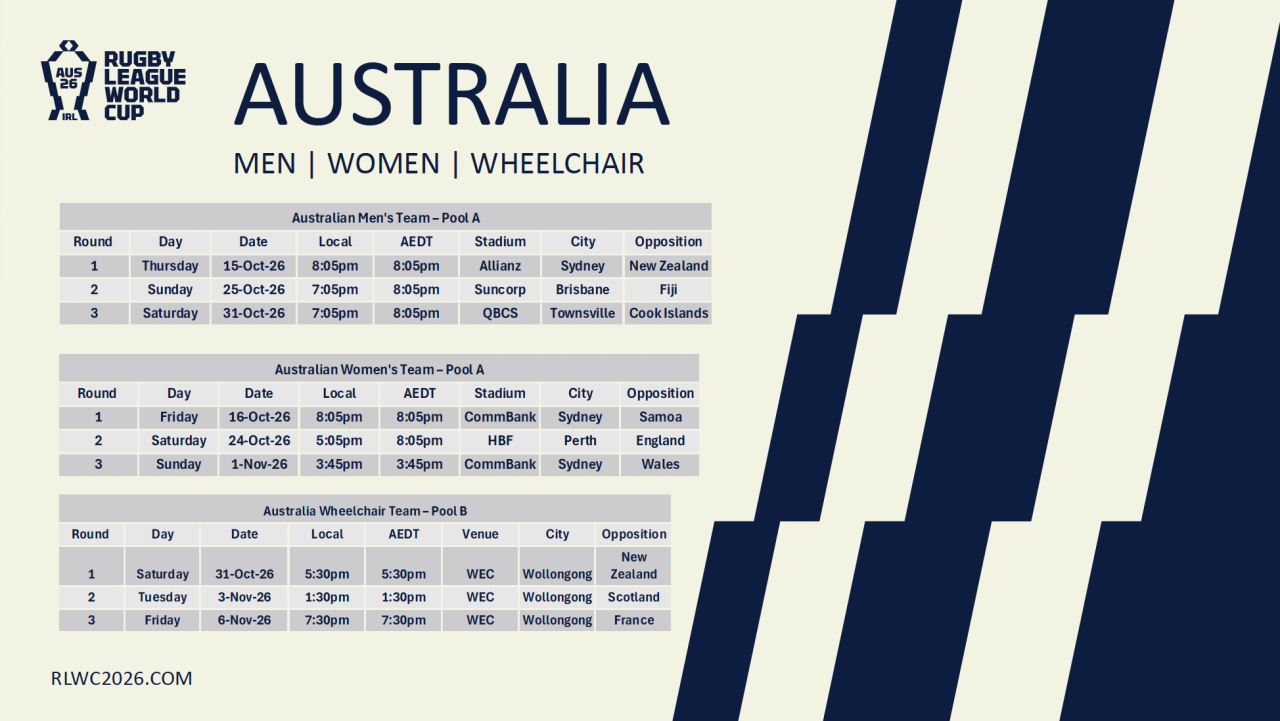 With the schedule now live, anticipation is quickly rising. The Wheelaroos will not only compete for a world title — they’ll represent the heart, dedication and resilience of the Australian Rugby League community.